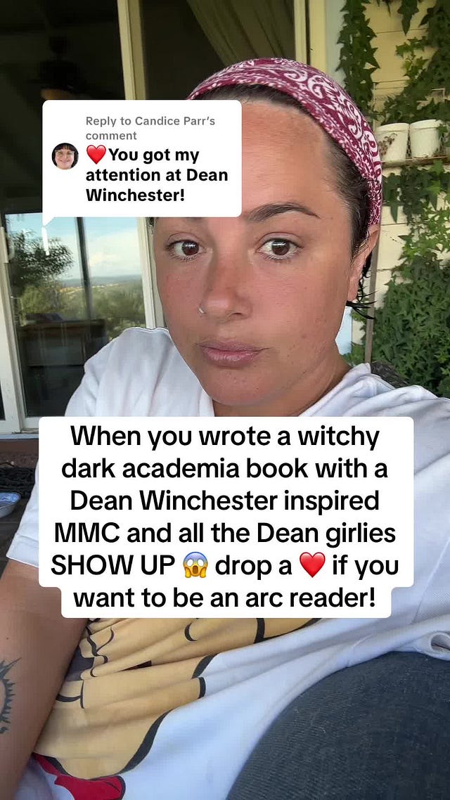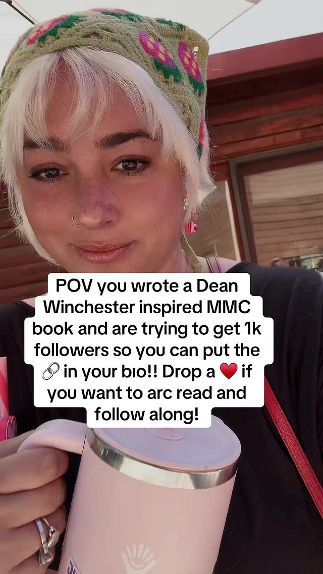 "POV you wrote a dean winchester inspired mmc book and are trying to get 1k followers so you can put the link in your bio!! drop a [heart emoji] if you want to arc read and follow along!"